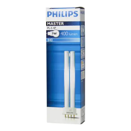 De Philips PL-S 7W 840 4P (MASTER) heeft energielabel B. De levensduur van de Philips PL-S 7W 840 4P (MASTER) is 13000 branduren. Als de lamp begint te knipperen en moeizaam opstart, is deze aan vervanging toe.